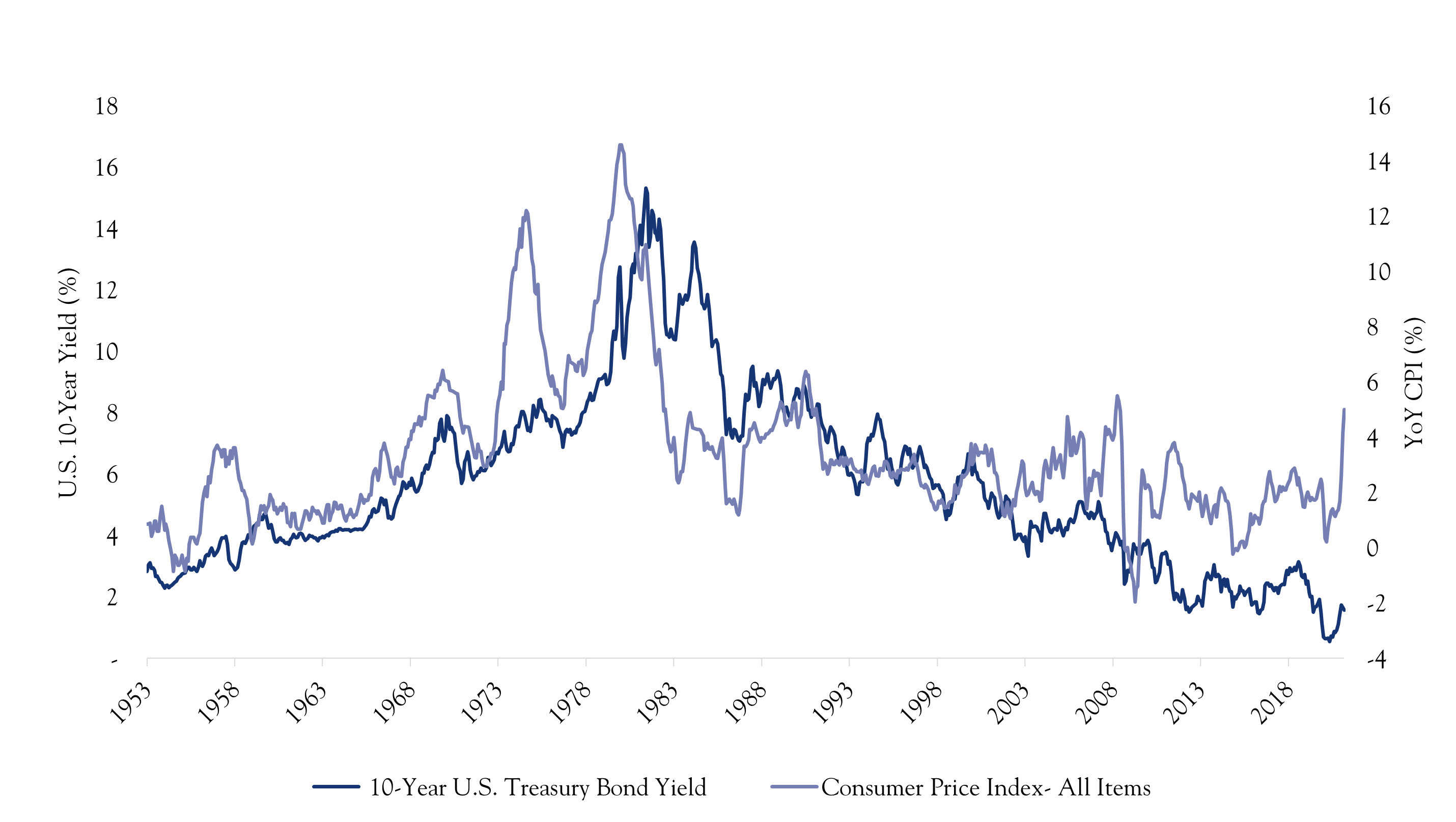 - Low and declining inflation in the past 40 years has supported low interest rates