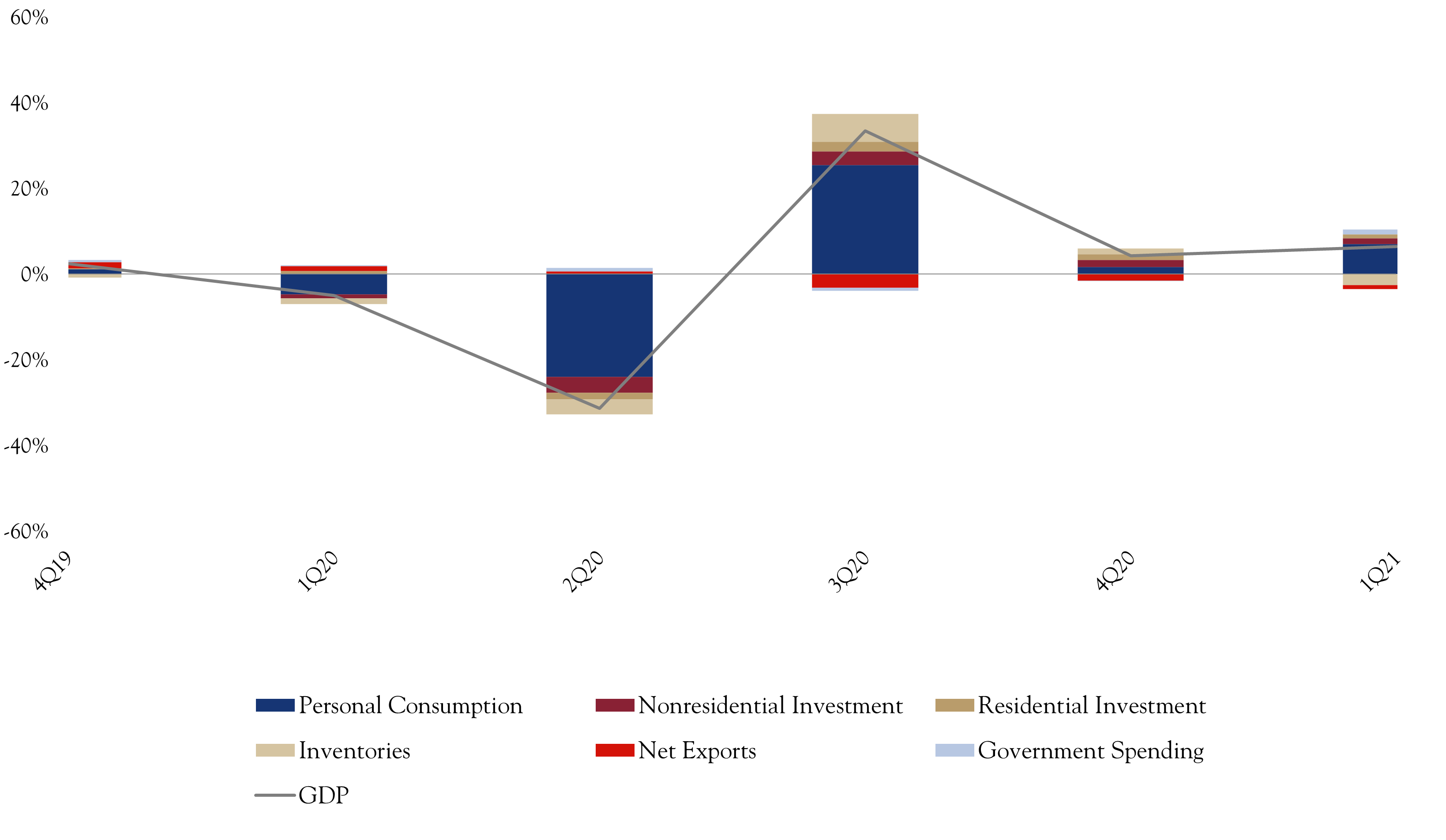 - Much of the collapse and rebound was in personal consumption (navy segment)