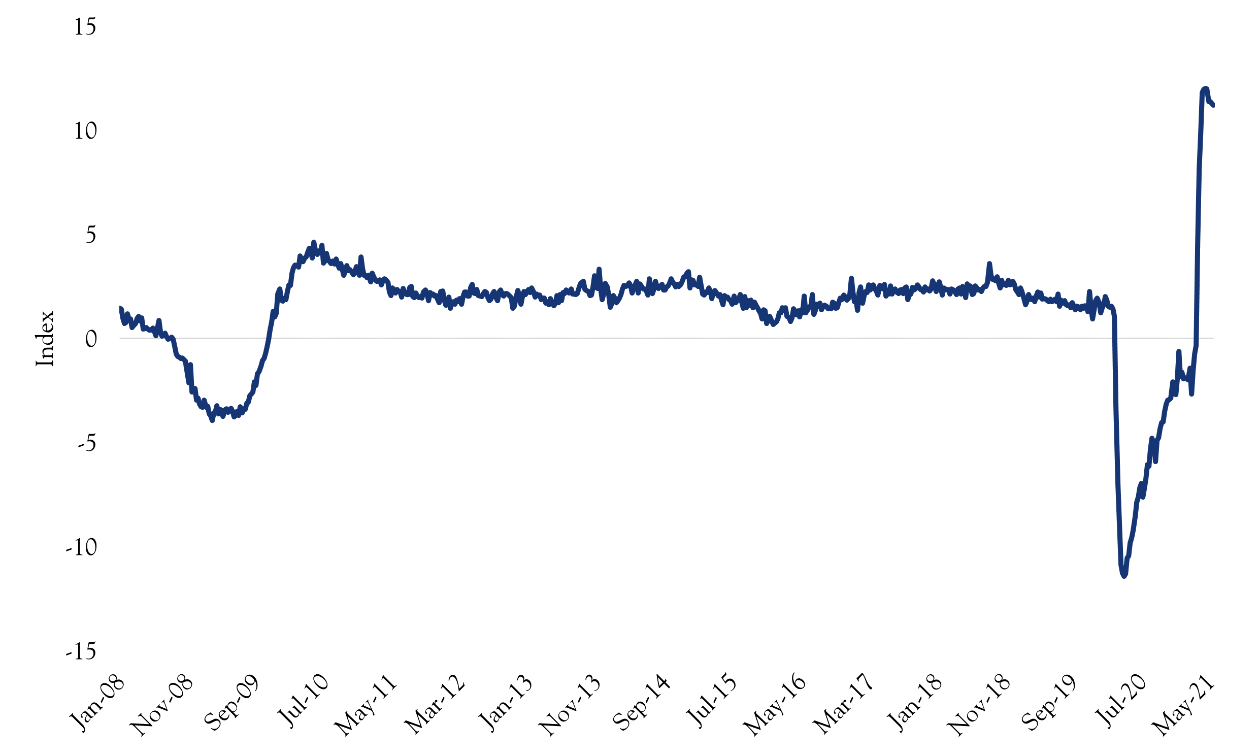 While most countries are lagging the recovery timeline of the U.S., we anticipate firms globally will see a resurgence of activity, rebounding earnings and stock performance and partially closing a longer-term valuation gap between the U.S. and foreign stocks. This metric, while distorted by the COVID cycle, has historically favored U.S. companies with higher valuations—a trend that is likely to continue, though likely at a smaller gap when non-U.S. economic recoveries begin in earnest. Considering the ample opportunities for great global companies, this recovery convergence and some diversification across different economic cycles makes a modestly sized non-U.S. allocation appealing for U.S. investors.