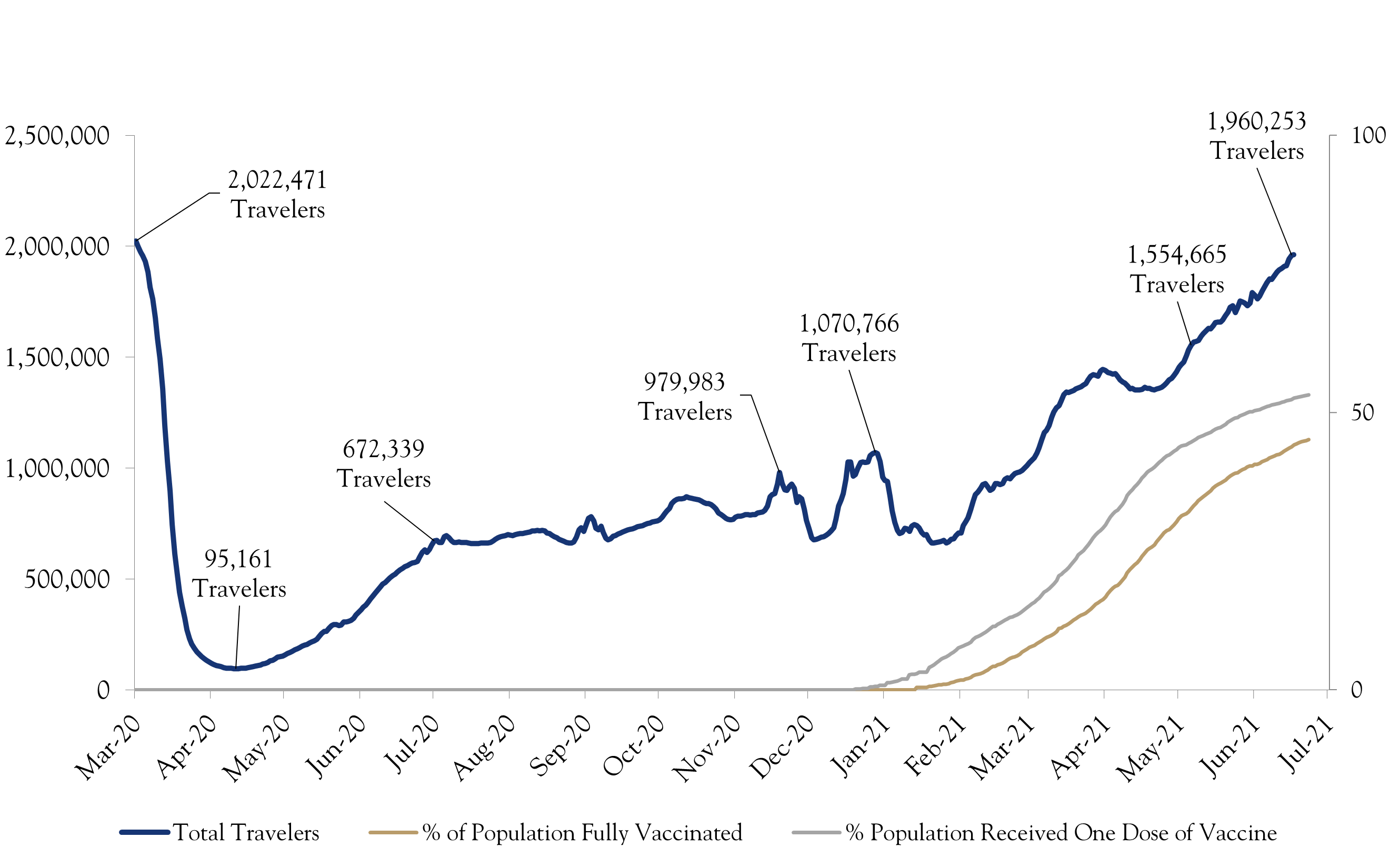 - Traveler counts have been improving consistently with the increase in vaccinated